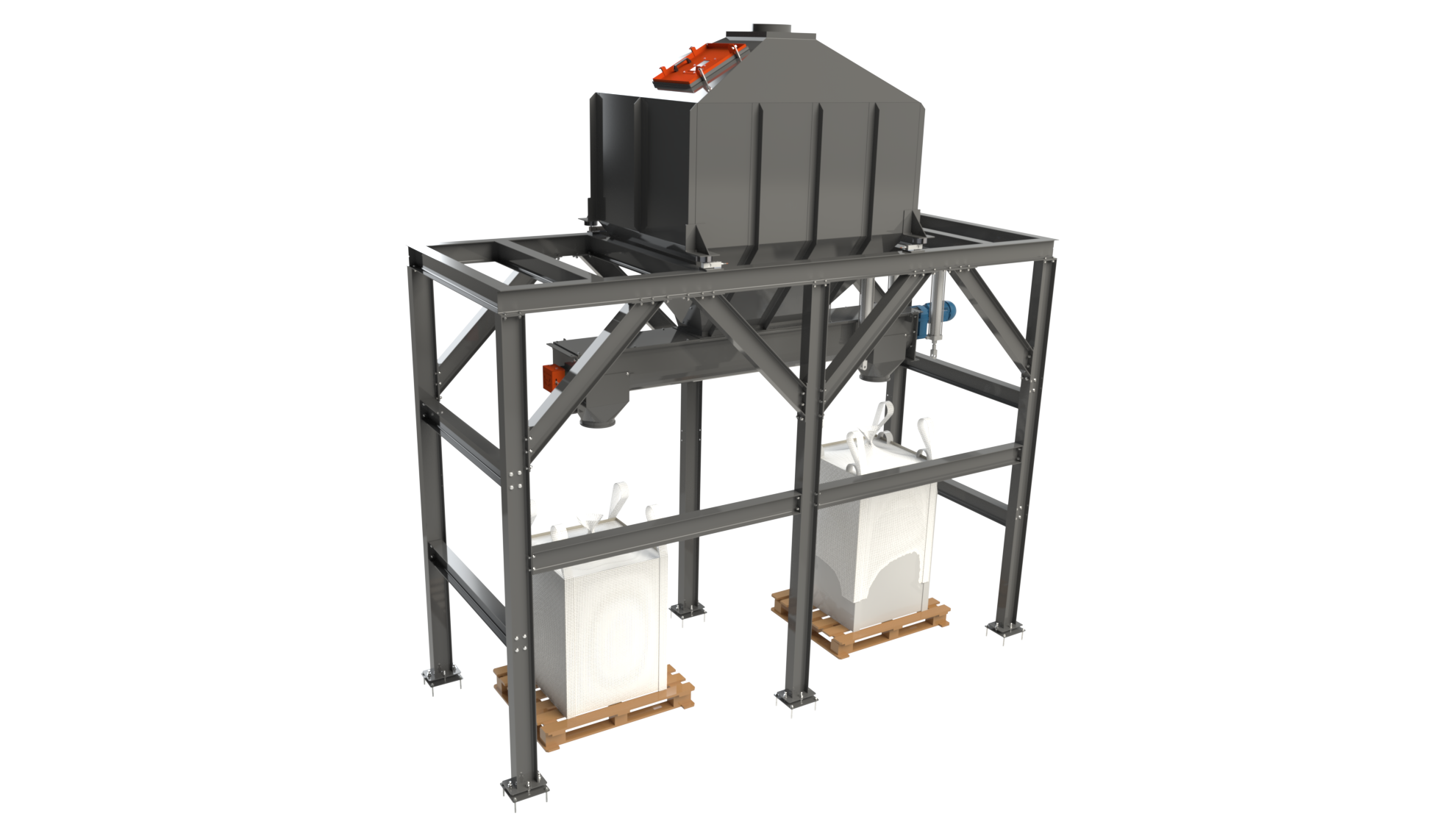 Equipada com células de carga de alta precisão e sistema automatizado de descarga, a estação realiza o enchimento exato de big bags, tambores ou sacarias industriais, garantindo repetibilidade e eliminando perdas de produto.